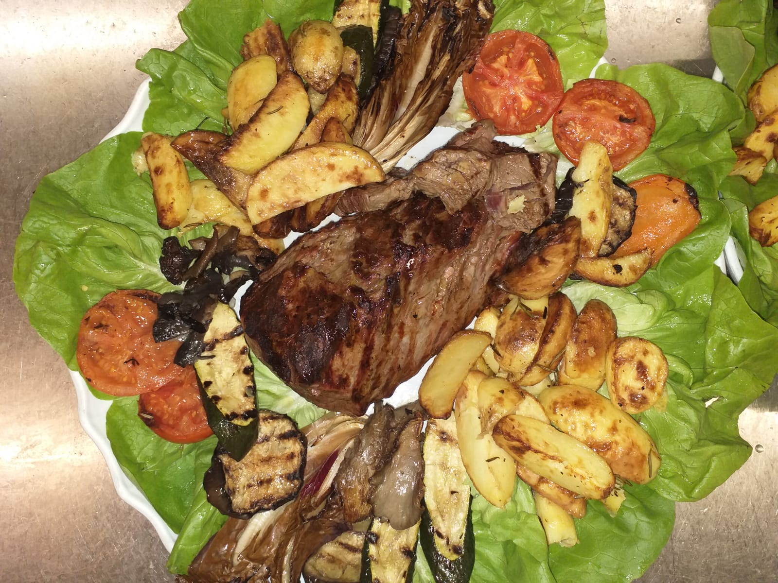 Per quanto riguarda i secondi, offriamo: grigliata mista, fiorentina alla griglia, costata di manzo alla griglia, tagliata di manzo al profumo di aglio e rosmarino, chateaubriand, nodino di vitello alla griglia, braciola di castrato alla griglia, filetto ai funghi porcini, sfilettato di manzo all'aceto balsamico.
