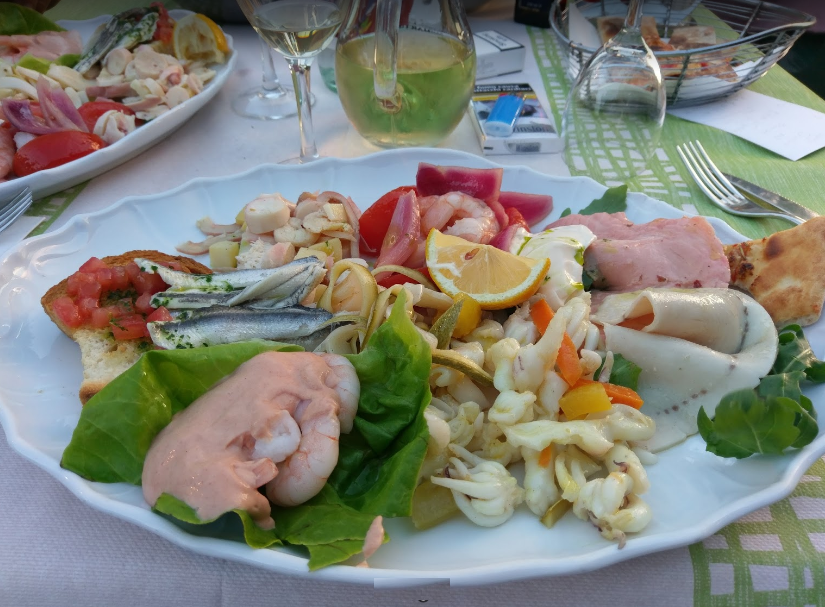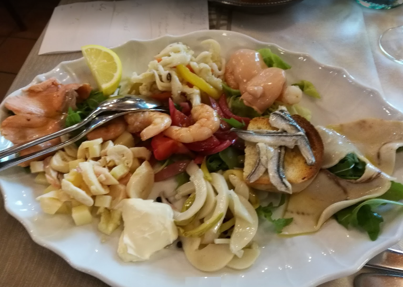 Troverete antipasti di pesce come: tris di antipasti