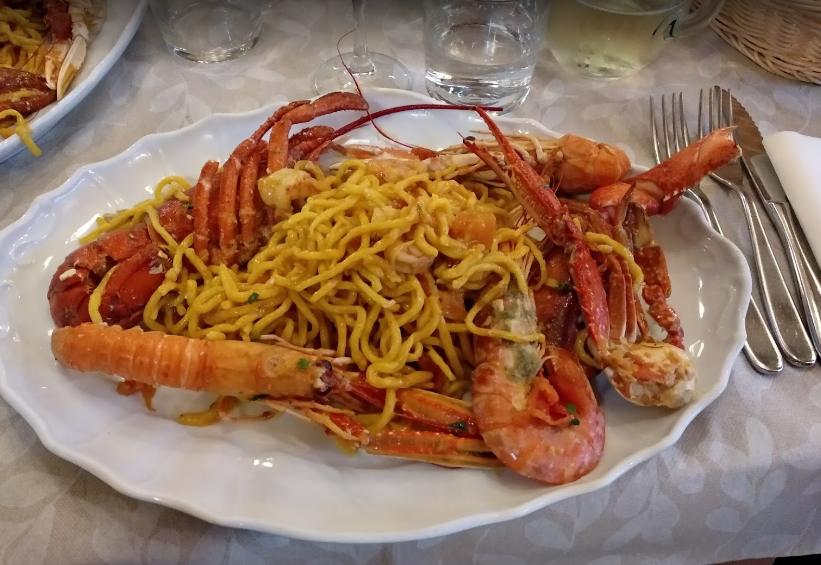 Oppure primi di pesce come: tagliolini alla Bella Madia o alle seppie e piselli, mezze maniche ai granchi, strozzapreti piccadilly circus, risotto mare e orto, risotto all'aragosta (min. 2 persone), risotto alla valenciana (min. 2 persone).